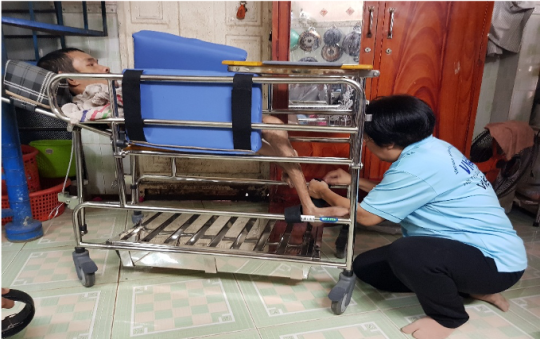 Rehabilitative palliative care aimed at improving quality of life of beneficiaries is a part of USAID supports to people with severe disabilities in Tay Ninh, Binh Phuoc and Dong Nai provinces of Vietnam. Many severely disabled people in these provinces, especially those living in low-income families, face extreme difficulties in activities of daily living due to the lack of appropriate cares and supports. In the first week of August 2020, the USAID’s Disabilities Rights Enforcement, Coordination and Therapies (DIRECT) project- implemented by VNAH, expanded its home-based rehabilitative palliative care to a new project site of Dong Nai. Initially, the service will benefit 25 people living with very severe disabilities and in poor economic condition. The project plans to gradually expand services to new districts from next year. Since 2019, the project’s palliative care has benefited 65 disabled, and engaged more than 50 voluntary caregivers who are family members of the disabled and village health workers. Professional health service providers regularly provided supports to the beneficiaries as well as training and mentoring to the caregivers. So What? The rehabilitative palliative care will improve the functions of, and enable persons with severe disabilities to live as independently and fully as possible. The training for and engagement of grass-root health providers and family members in the support system contributed to improving their awareness on the needs of the disabled, and capacity to better support the disabled in needs.